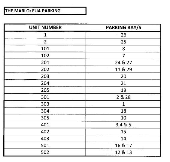 - All parking bays are allocated to specific apartments and specific homeowners. You are to only park in your allocated bay or your vehicle will be clamped and there will be a 500 Rand release fee.